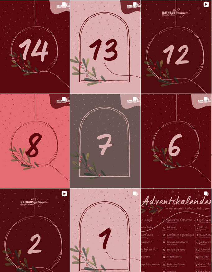 Die Teilnahme ist ganz einfach: Auf Facebook oder Instagram auf der Seite der Rathaus Passagen den jeweiligen Kalenderpost liken, kommentieren – und schon landet man im Lostopf für eine der liebevollen Weihnachtsüberraschungen.